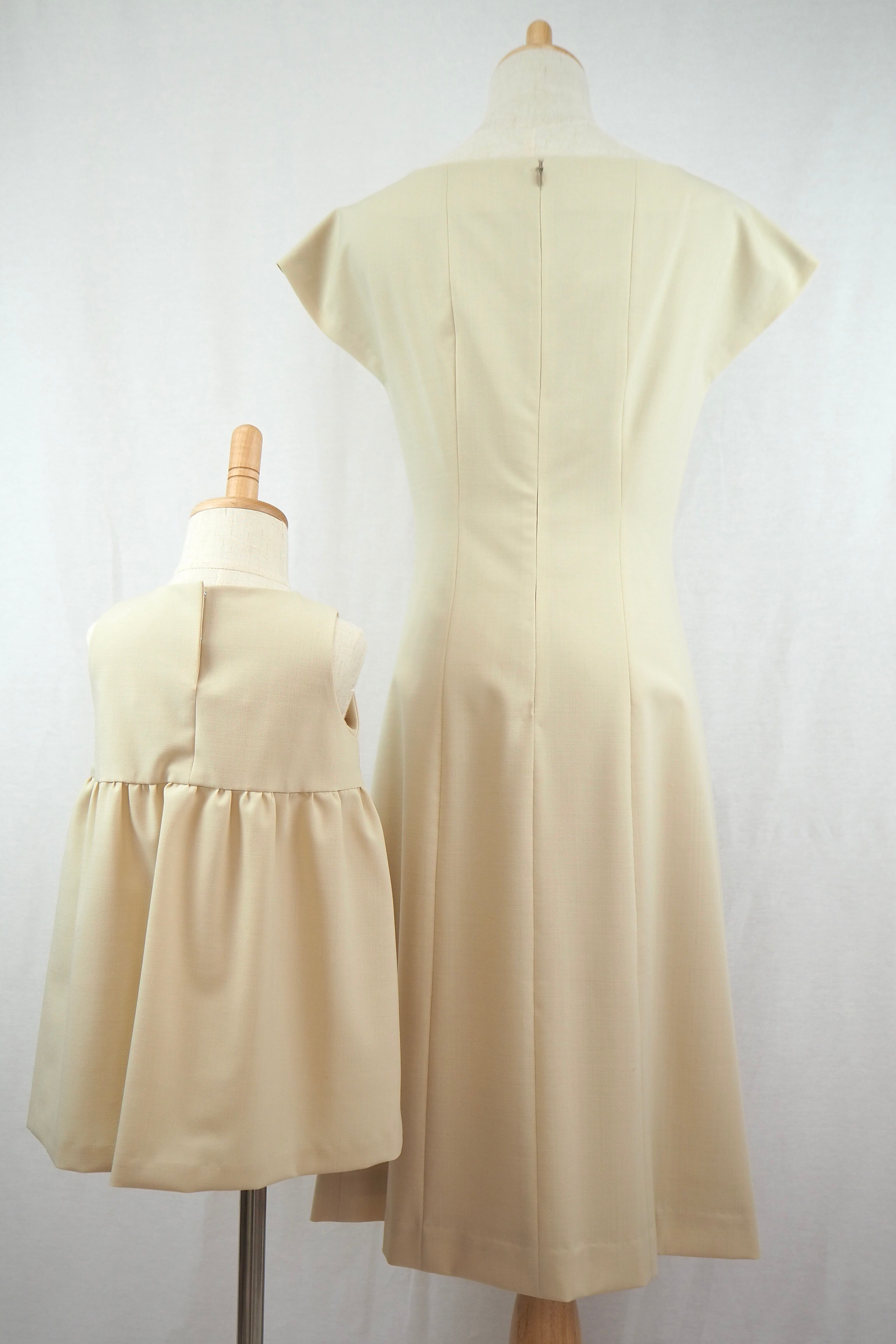 9号サイズ イエローベージュ サマーウール フレンチスリーブワンピース